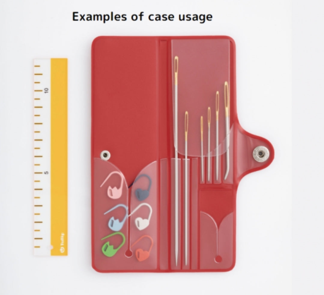 ●Assorted needles of different thickness and length are stored in a portable handy case with snap button fastener.