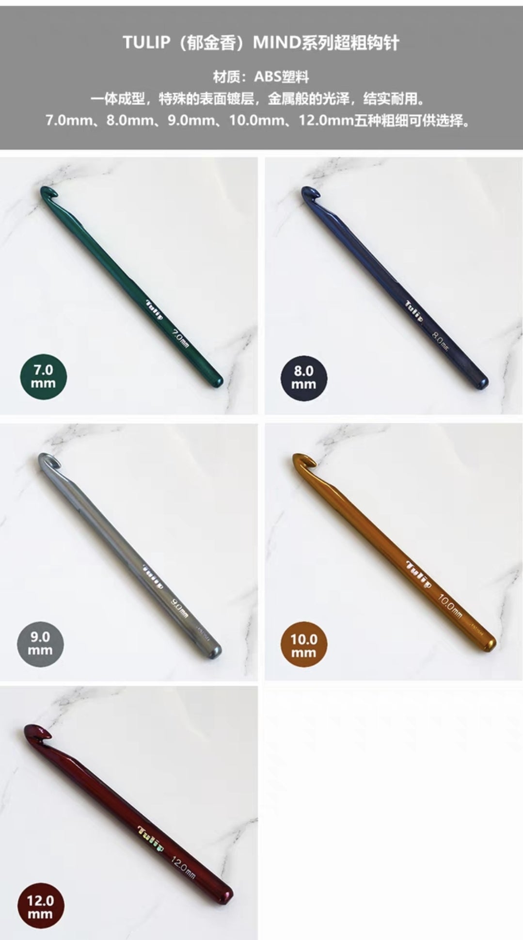 Hook sizes: 7.0mm, 8.0mm, 9.0mm, 10.0mm, 12.0mm